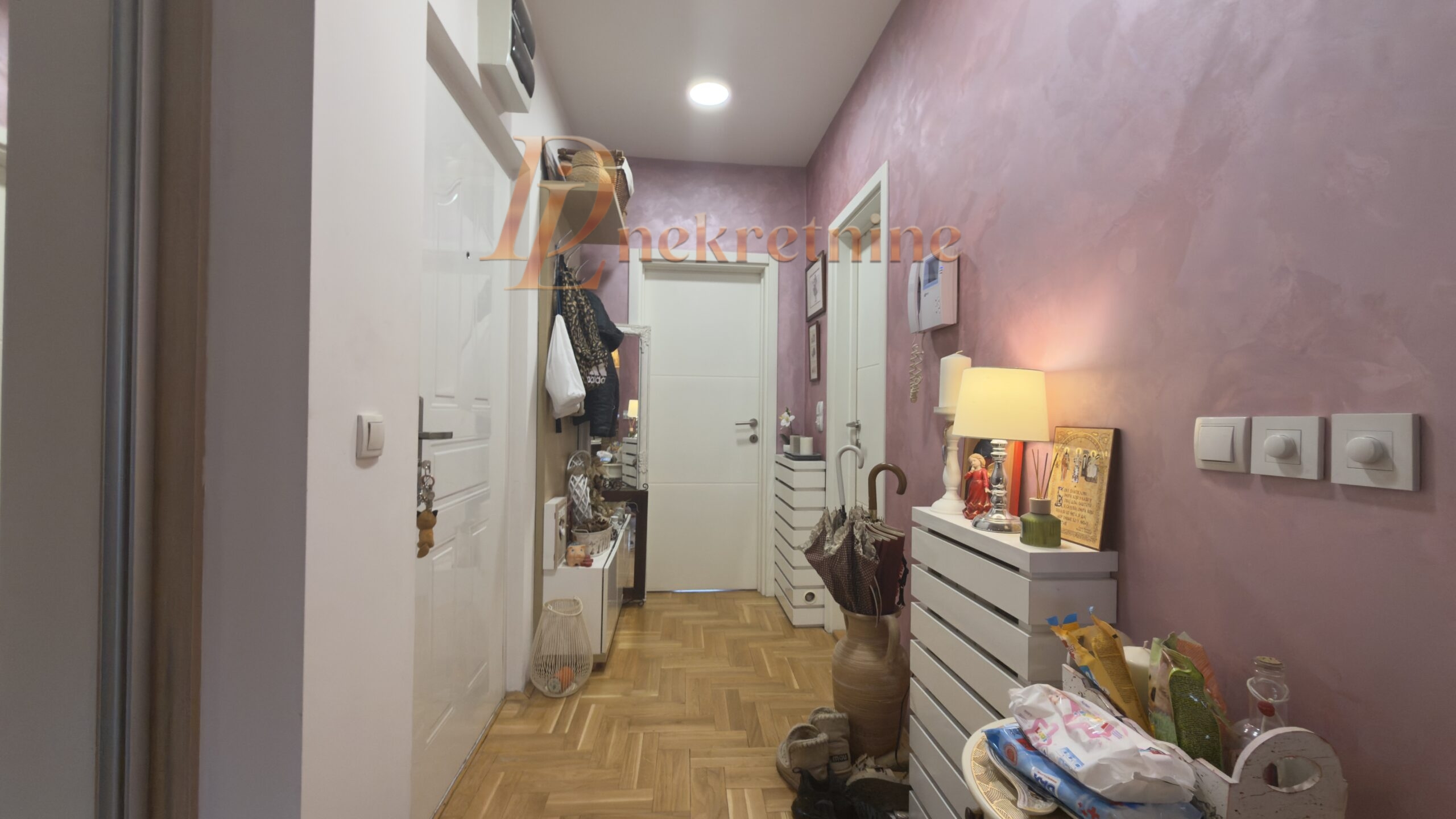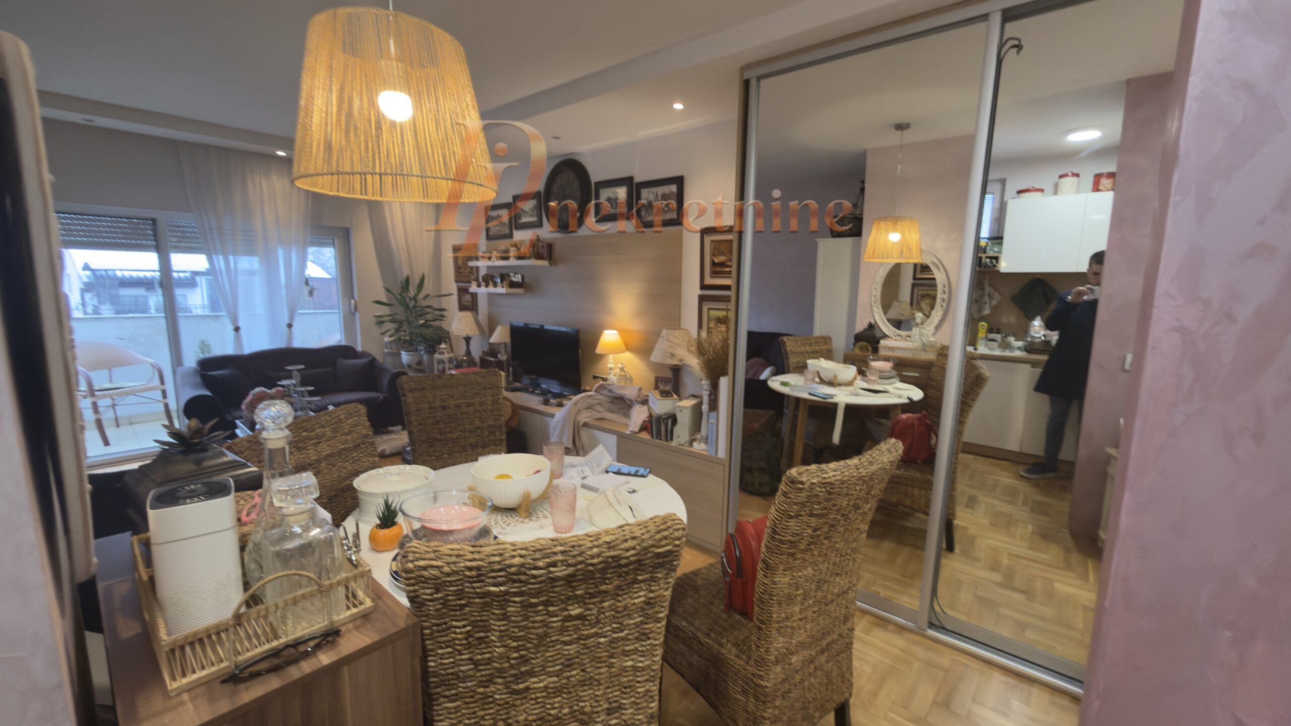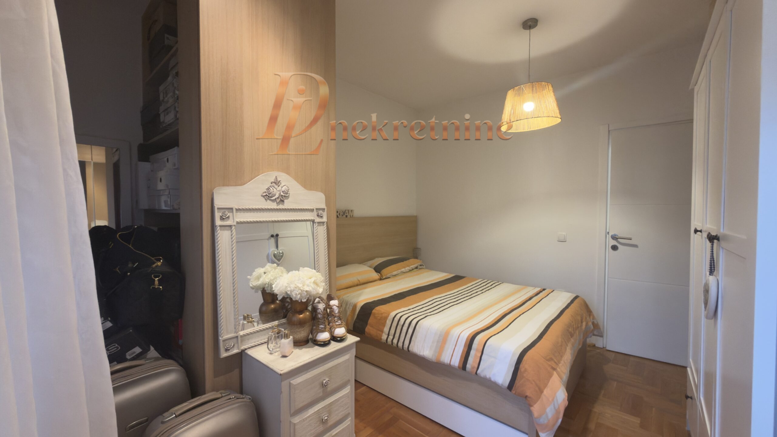 Stan se prodaje polunamešten – ugradni ormari i elementi koji pružaju praktičnost i maksimalnu iskorišćenost kvadrature, a opet ostavljaju dosta funkcionalnog prostora.